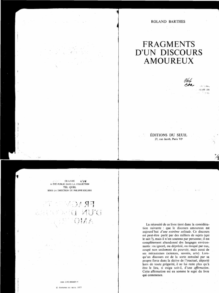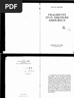 Roland barthes fragments d'un discours amoureux pdf. 18 Roland Barthes Fragments dun discours amoureux Paris. La necessite de ce livre tient dans la consideration suivante. Fragments dun discours amoureux 152.