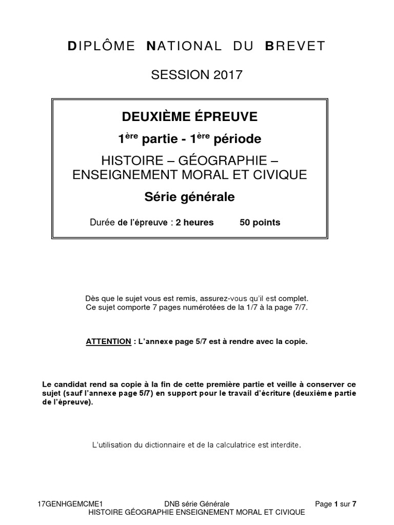 Il ne vous reste plus quà télécharger les corrigés du Brevet en. Le sujet complet dHistoire Géo EMC du Brevet 2017 est disponible ici Consultez aussi. Le sujet de brevet 2015 histoire géographie éducation civique sujet-brevet-HG-2015 Corrigé brevet 2015 histoire géographie éducation civique.
