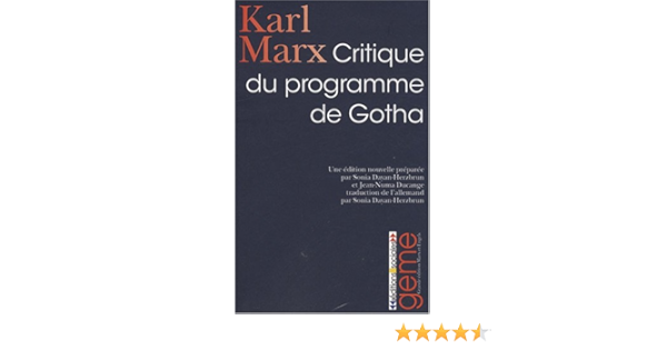 Le livre en format RTF rich text format à télécharger. Critique of the Gotha Programme is a critique of the draft programme of the United Workers Party of Germany. Les emphases sont les miennes Lettre dEngels à Bebel p.