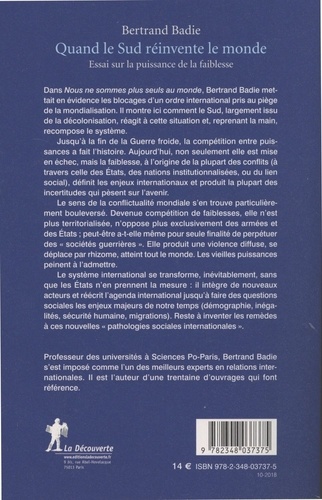 Essai sur la puissance de la faiblesse Dans Nous ne sommes plus seuls au monde Bertrand Badie mettait en évidence les blocages dun. Quand le Sud réinvente le monde Quelques-uns se souviennent des traités de Westphalie qui mirent fin à la guerre de 30 ans en 1648. Bertrand Badie Quand le Sud réinvente le monde Quand le Sud réinvente le monde Essai sur la puissance de la faiblesse Bertrand Badie Dans Nous ne sommes plus seuls au monde Bertrand Badie met- tait en évidence les blocages dun ordre international pris au piège de la mondialisation.