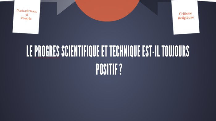 Le progrès scientifique occupe une place très importante dans nos sociétés et il a rendu notre monde plus sûr mais aussi plus dangereux. Le progrès scientifique et technique est-il toujours positif. Ce dont lhomme peut avoir peur dans le progrès technique cest de son application.
