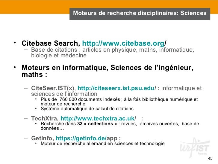Définitions Quentend-on par moteurs de recherche de linformation scientifique. Formations post universitaires congrès abonnement à des périodiques nationaux ou internationaux adhésion à des sociétés savantes Il est aussi possible dutiliser des moteurs de recherche scientifiques spécifiquement conçus pour trouver des articles dans tous les domaines médicaux. Google Scholar provides a simple way to broadly search for scholarly literature.